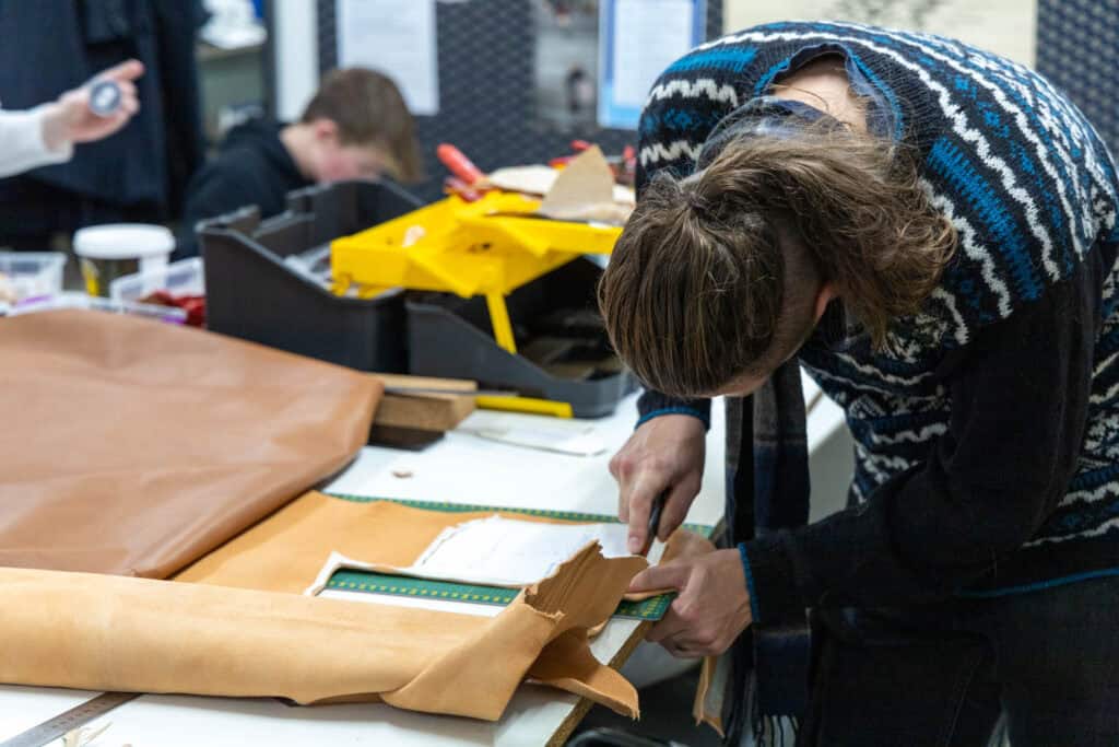 Det er muligt at købe læder i lokalerne til samme pris som hos Læderiet. Har du brug for noget helt specifikt – f.eks. en særlig type skind eller tykkelse – så husk at tage det med hjemmefra.