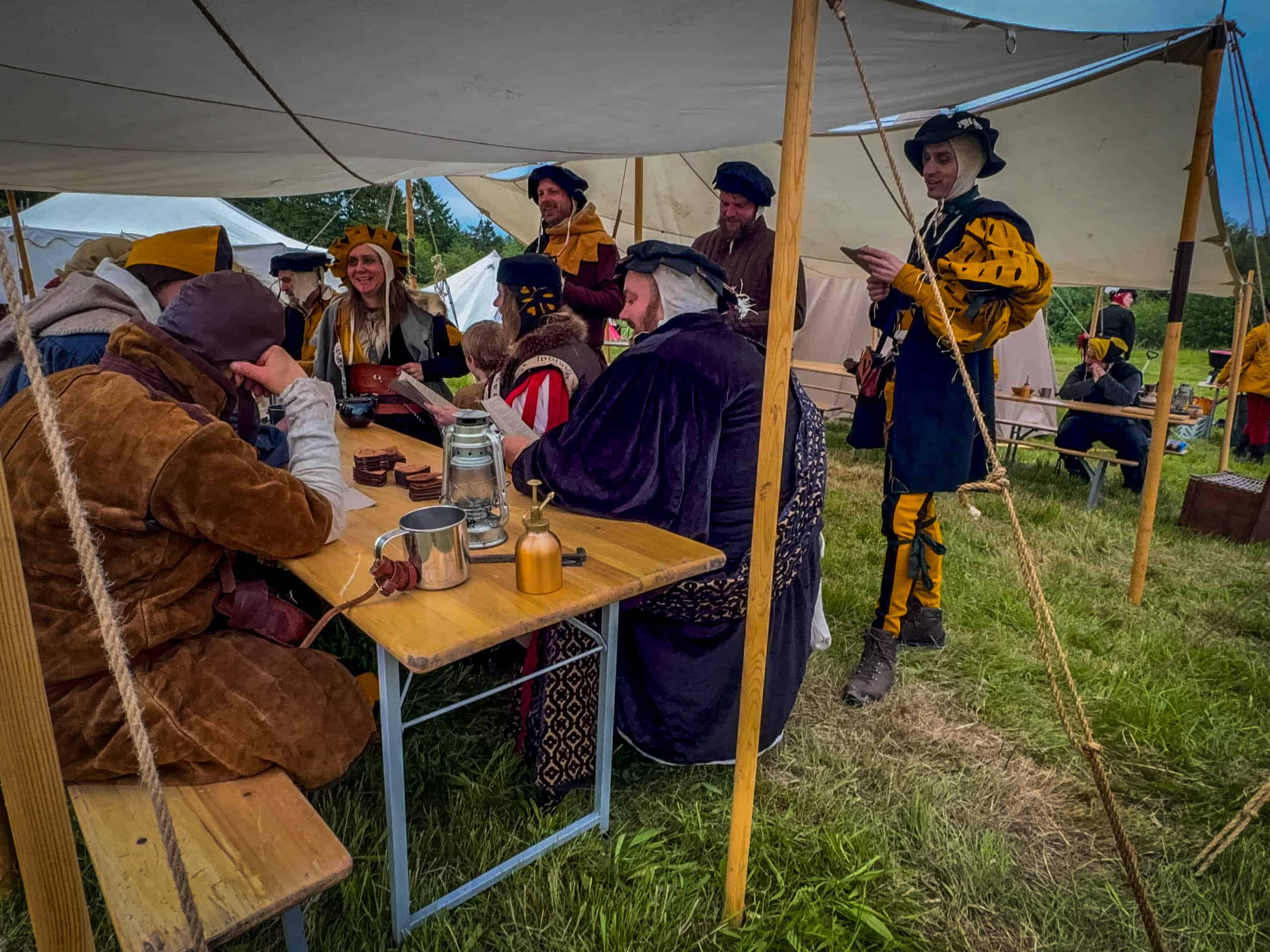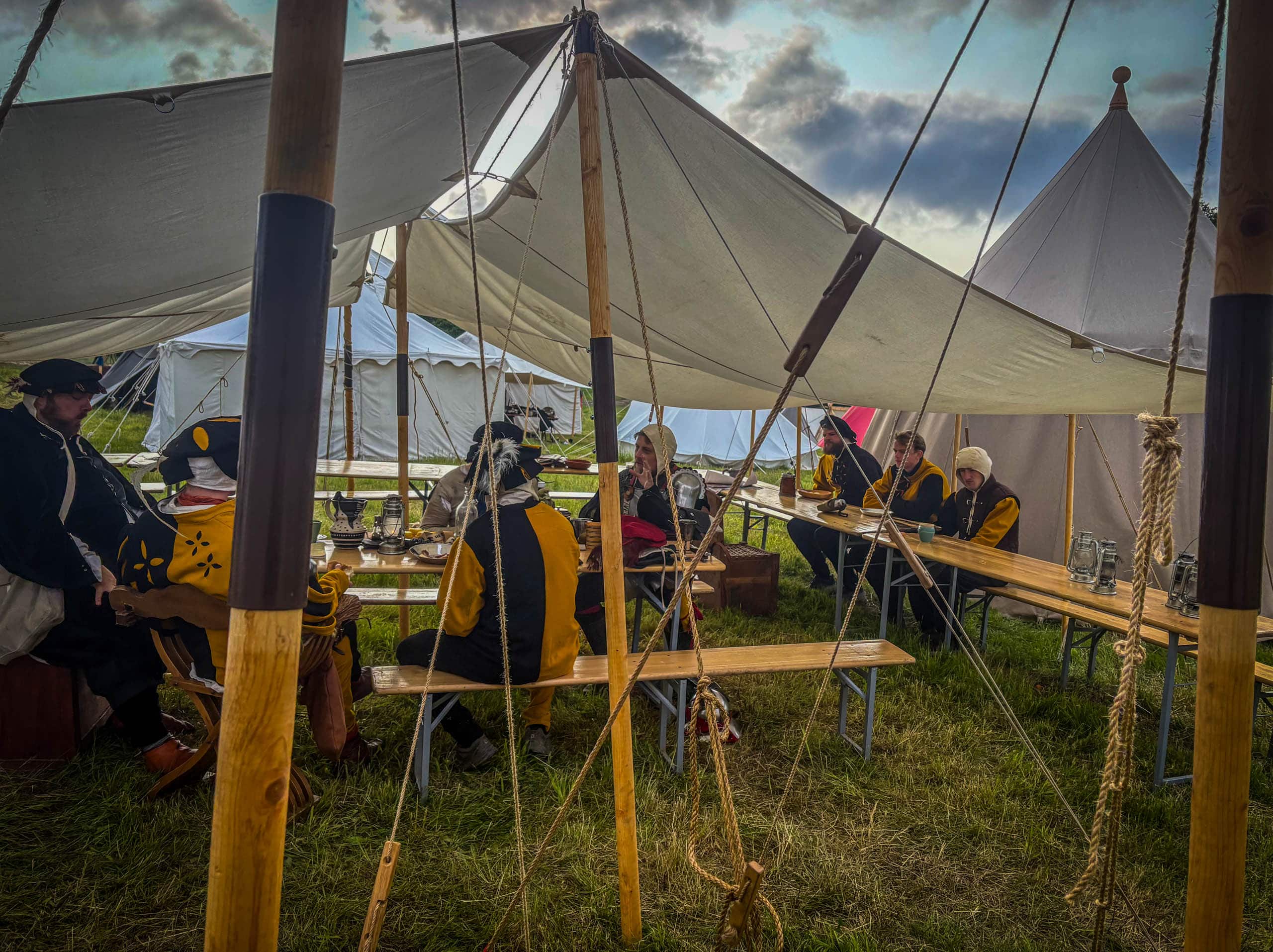 - Overnatning: Vi medbringer middelaldertelte, som vi vil sove i på området. Man skal selv medbringe sovegrej.